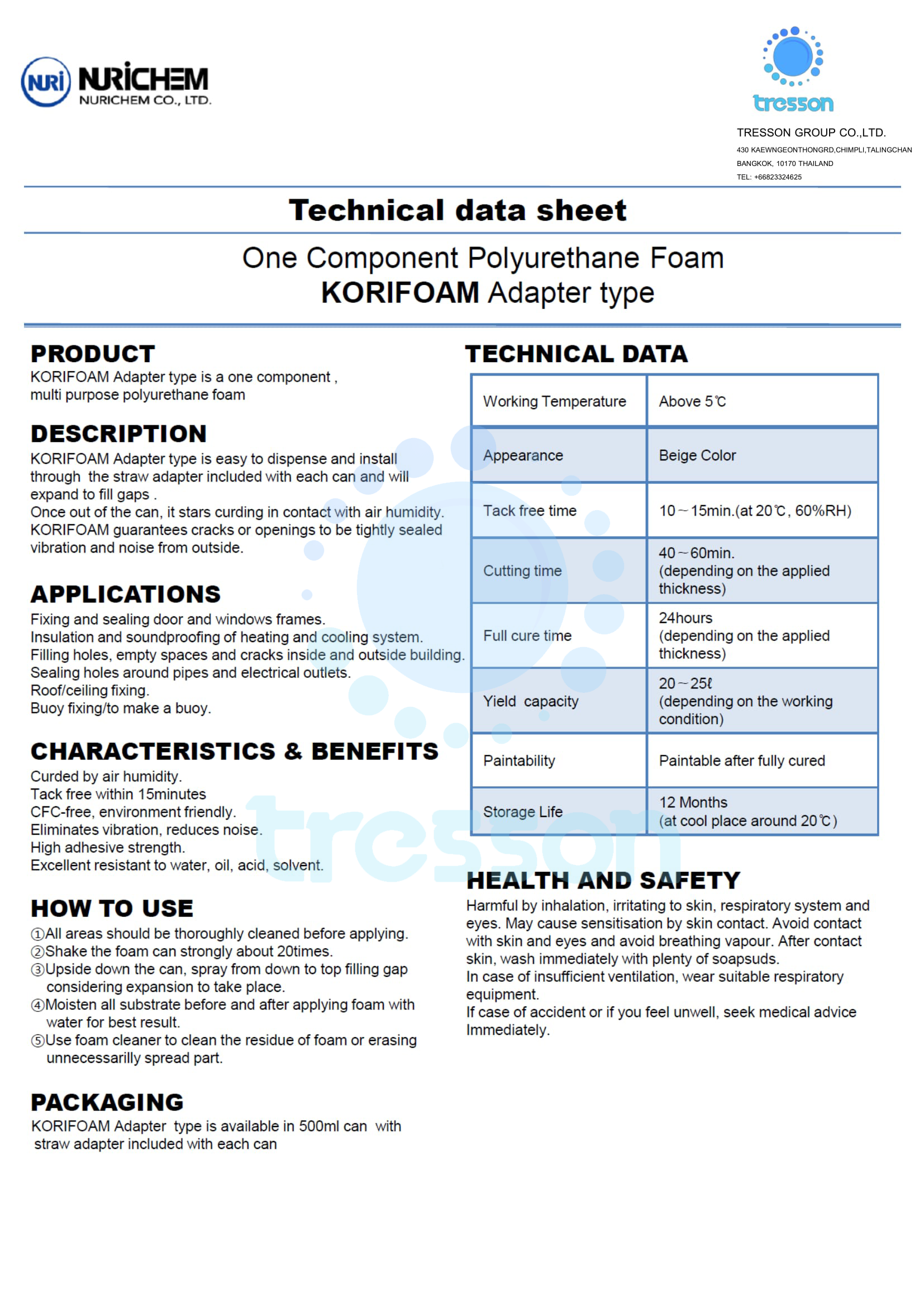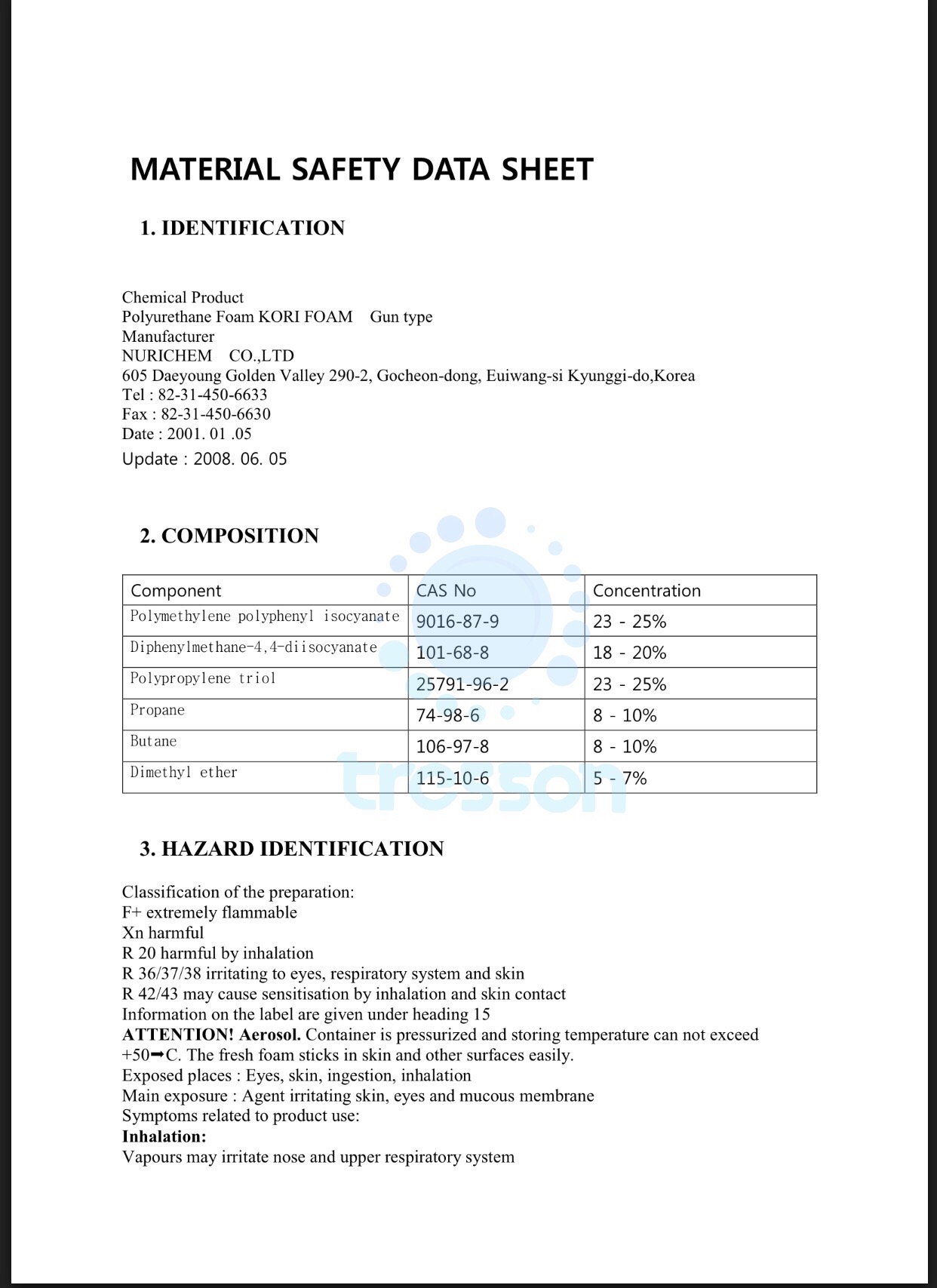 Product Specification / MSDS & TDS for KORI/ Tytan